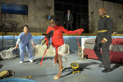The acting was excellent, and the lead who played Hamlet particularly conveyed the emotional anguish he was going through. There was a sometimes odd use of modern pop music at various places, but overall it worked. There was lots of actor movement in the aisles, the first of which startled me when a guy came with a big gun right in front of us. Overall a fun evening and good end to the 2012 season.