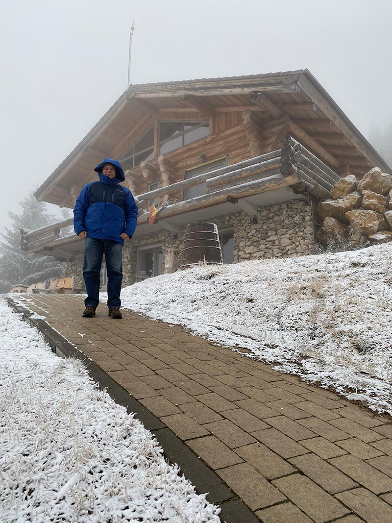 On Christmas Eve we decided to go out for a drive in another area of the mountains in Bran county. We started with brunch at the wonderful restaurant D.O.R., which at that time was only serving a fixed menu four course meal. It was delicious and gave me a chance to experience some special local (somewhat gourmet) dishes. Afterwards we went past the famous Bran castle and headed up into the mountains towards the mountain recreation and tourist resort area of Cheile Grădiștei. As we headed up into the mountains, it started snowing pretty good. We got to see some beautiful scenery in the fog and snow, and by the time we got to Cheile Grădiștei it was pretty socked in with fog. The ski area at the top has apparently hosted many international winter sports competitions. We walked around a bit and enjoyed the wintry weather, and then headed back down. For me, it was another nice dose of snow and mountains.