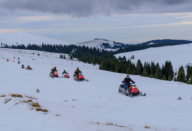 We made our way up towards the peak that held a cross that overlooked the valley below. Driving the TransBucegi the road was narrow and windy, and at the top got a bit snowy which seemed to confound some of the tourists who had come unprepared for driving in the snow. Up top there were many people out enjoying the snow. We got out to take some pictures and I was passed by a line of people on snow mobiles out on a tour. We traveled a ways further up the mountain, but decided to turn around as too many tourists were getting bogged down in the snow on a very narrow road. After coming down the mountain we spent a little time in Sinaia doing some Christmas shopping.