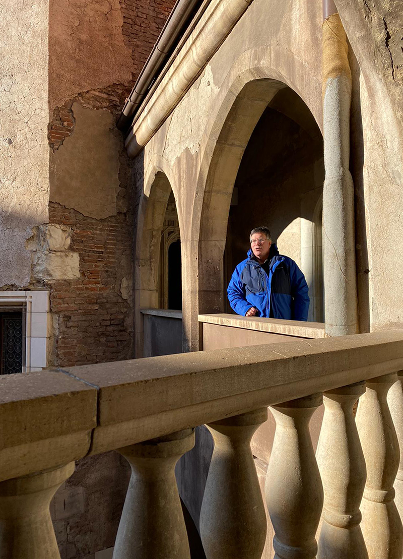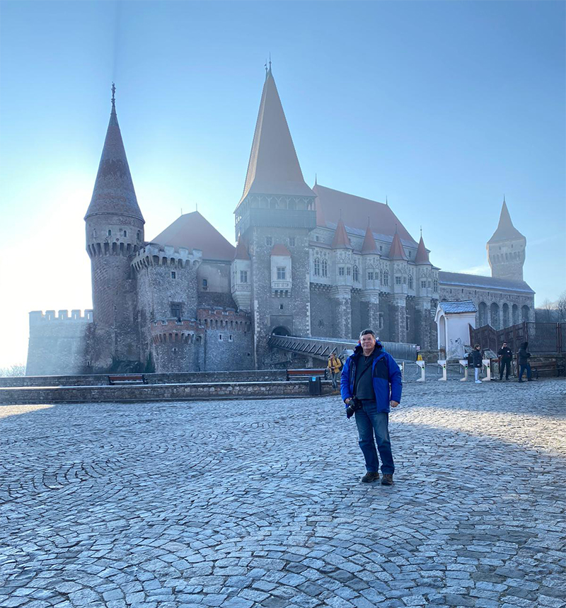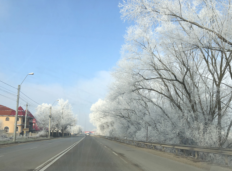 After a day of appliance shopping, on a very cold morning we got up early and headed westward across Transylvania to the town of Hunedora, the location of Corvin Castle. This was a long drive so we left before dawn. Due to the cold, we had some beautiful scenery with frozen ice covered trees. Most of the way there, there was heavy fog along the road. It really didn’t clear much until we got right to the castle.
