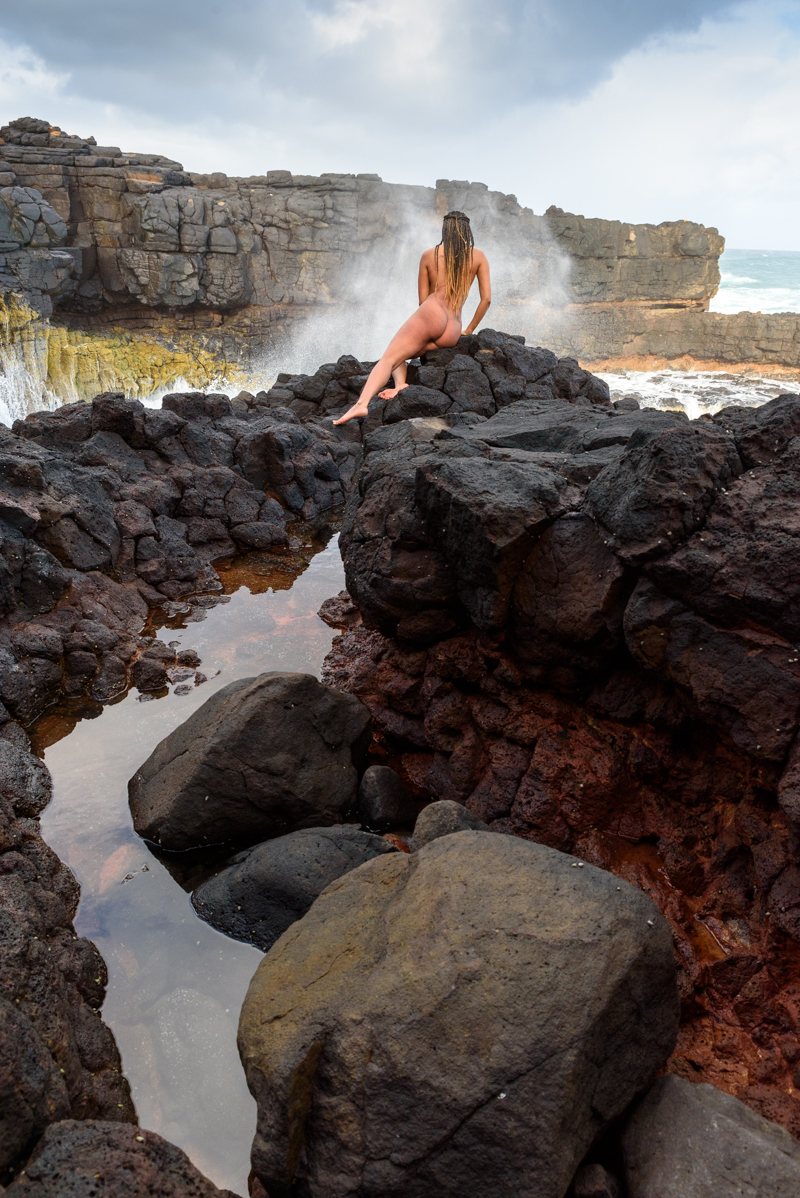 The first shooting day started out at Secret Pools, which was in the same basic area as Secret Beach where we shoot last year. After a mild hike down, we got to some rocky heights overlooking the ocean. I got some nice shots on the black rock against the sea. We also got the first of our many rain bursts of the week, but afterwards it yielded a beautiful rainbow that was bright enough to stand out in the photographs. As we got back for lunch a village patrol was about to boot Aaron’s car in front of our house. He smoothed it over, but that was a foreshadowing of our trouble with authorities on this trip.