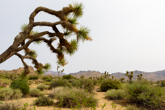 The day after the Weese’s Pieces shoot I drove further out into the desert to Joshua Tree National Park to do some more photography with Sienna Hayes. We had planned a sunset shoot, and it was a little over 2 1/2 hours from my Airbnb. I left before noon and got down to the park to do some sightseeing and scoping out before we got together. I was also able to buy my lifetime parks pass, one of the little benefits of getting older. The park is covers a large desert area with lots of different types of cactus and of course Joshua trees. The views again suffered from the hazy sky; it would have been nice to have a blue sky with clouds, but you can’t have everything.