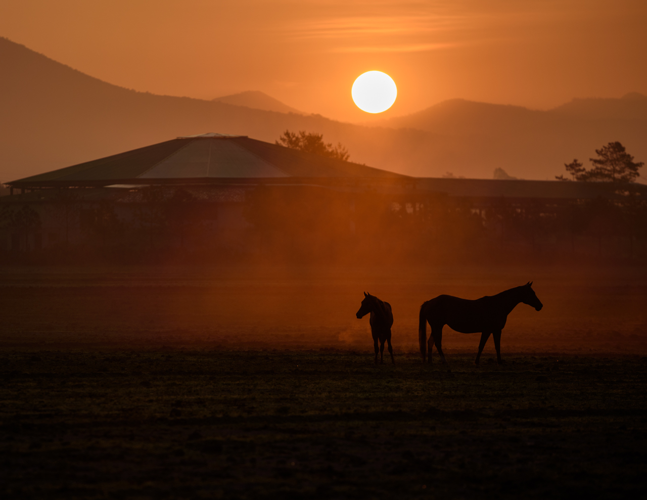 Our first full day was long and varied, and it began with a photoshoot at sunrise as they let the horses out to exercise in the fields. The land was covered in a morning fog and was beautifully backlit by the rising sun. Some of the horses had a mind of their own and it was interesting to watch the charro deftly herd them out in the right direction and through the gates. After the horses had their turn, some of the cows were let out as well.