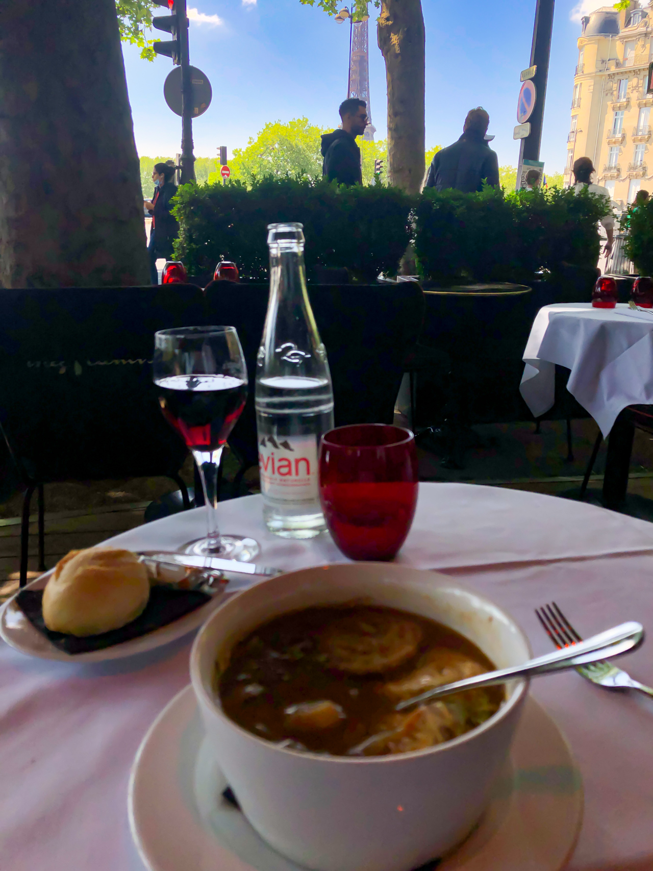 I got to my hotel, Hotel Félicien, which is located on ‘the right bank’ in the 16th arrondissement, and despite a long flight and lack of sleep I went out for a much-needed walk to do a little exploring. My hotel was only about a mile from the Eiffel Tower. I walked there, then on my way back headed up a long stairway on Rue Beethoven into the Passy area, and ended up at a nice little restaurant (La Passy) where I had a late brunch and my first Parisian meal. I eventually navigated back to my hotel [10,845 steps].