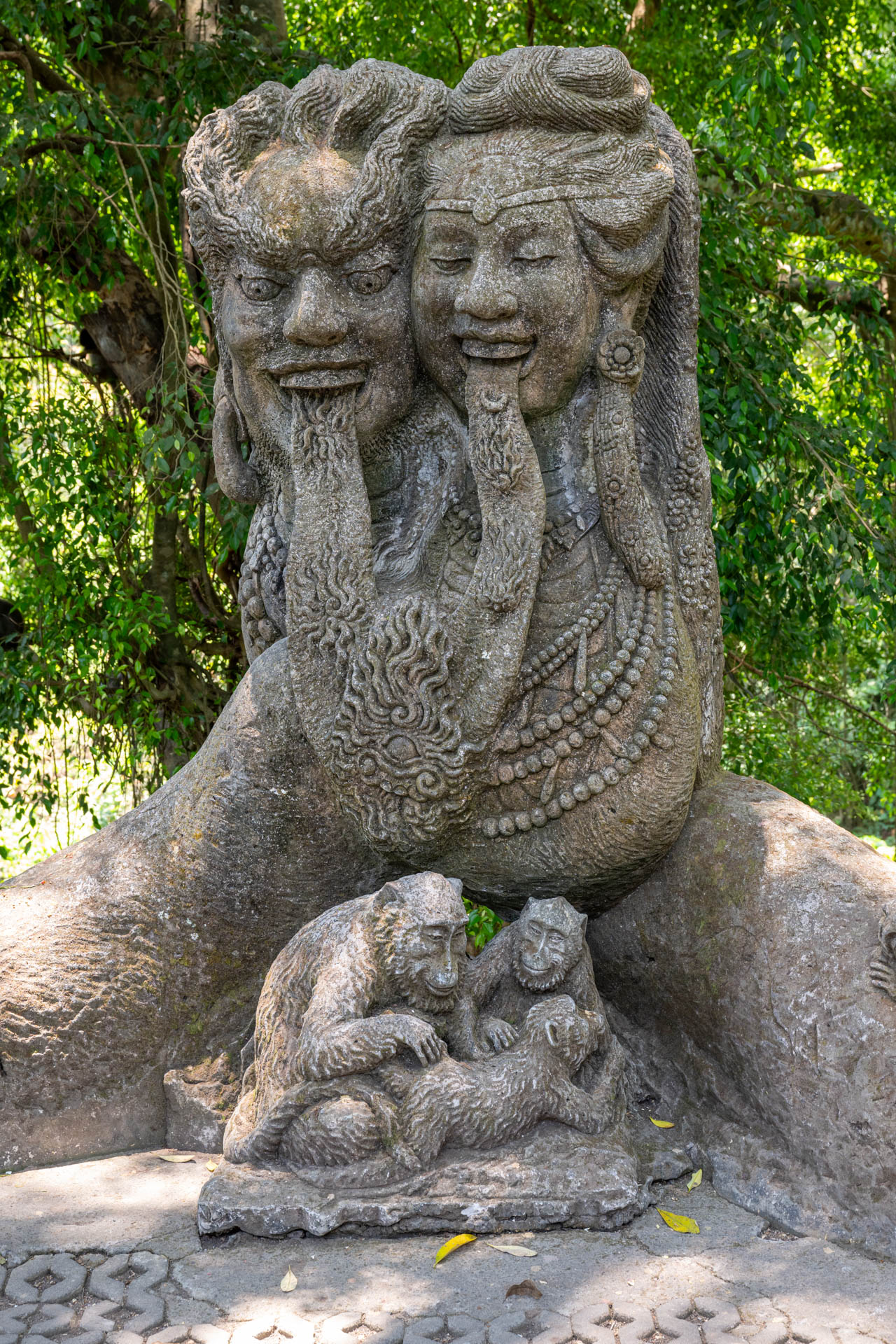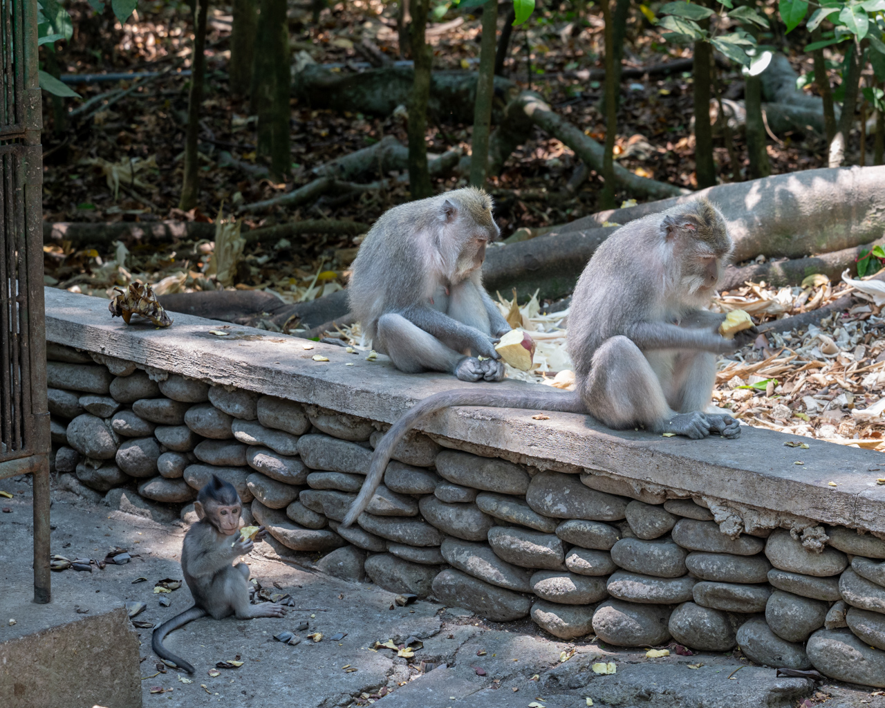 We finally got to Ubud where we visited the famous Sacred Monkey Forest Sanctuary. We had been warned that they can try to steal things, but it was a very hot day and the monkeys we saw seemed fairly subdued. They seemed to be mostly indifferent to the people, as I’m sure they have tons of people looking at them every day. Although, the guides kept warning people not to look at them directly in the eyes. It was interesting to see their intelligence as they used tools, like stones, to smash up food items to eat. After the visit, we went to lunch at a place famous for crispy duck, and I had duck for the first time ever. The restaurant was nice and had a nice garden atmosphere.