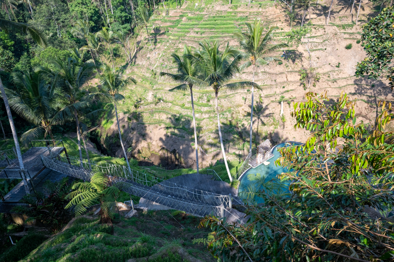 After lunch, we headed north. Along the way we stopped in Tegalalang at a coffee shop, Uma Pakel, that featured ‘Agro Tourism and Swings’. On the coffee side they displayed the production of kopi luwak coffee, supposedly the most expensive coffee in the world where the beans are processed after being eaten by the Asian palm civit (luwak) and then separated from the animal’s waste products. I’m no coffee expert, but I figured I’d try a cup (it wasn’t expensive there), and it was ok, but didn’t jump out at me as the the greatest premium coffee in the world. The restaurant (like several in the area) sat on a cliff edge overlooking a valley, and they had installed swings, that our models tried out. It was a bit of a racket as they charged pretty steeply for each ride, and each photographer, and they also had long dresses you could borrow. One of the models described it as an Instagram factory. But it was a nice view.