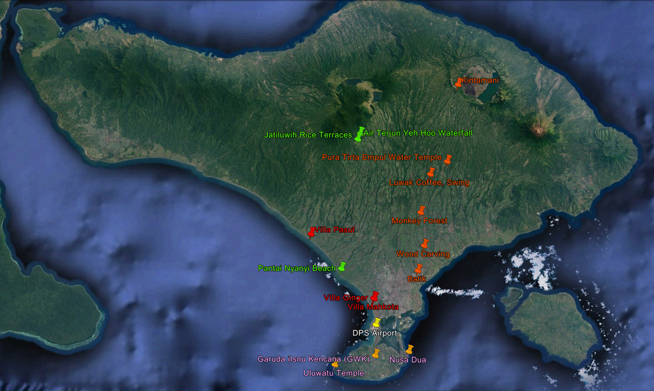From the time I left my house, it took about 31 hours of traveling to reach Bali. I flew from SFO through Taipei, Taiwan and then on to Bali. Bali is 15 hours ahead of my normal time zone, and I don’t think I ever really adjusted. One problem I had on the trip was insufficient sleep; but that’s typical for me on these long trips. One thing that surprised me was how close Indonesia (and Bali) are to the equator. In my mind it was much farther South. It is also quite close to Australia, and the Australians view it a bit like their equivalent of Hawaii. That’s why it’s good to travel, it helps you put some aspects of the world closer to reality. Indonesia consists of more than 17,000 islands and is a primarily Muslim country. But Bali is predominantly Hindu, and it is where most of the Hindus in Indonesia live. So that really colors the culture of the island.