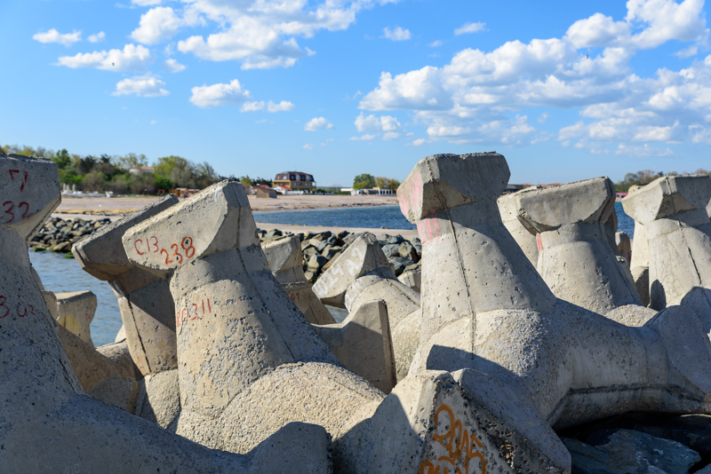 Eforie Sud, where the Airbnb was located, was apparently created as a resort destination with hotels during the communist era for families to come to the seaside. Many were now decrepit or abandoned, so the area appeared a bit sketchy. The actual place we were staying was a room in a small hotel type place that seemed to be under development. The host was an easy going guy who provided various goodies during our stay, and offered some hand made refrigerator magnets when we left. A nice feature was that it was a short walk down to the seaside. It was an interesting contrast of a beautiful natural location with hotels and buildings that had been abandoned due to economic circumstances. But there were signs of new development in the area too.