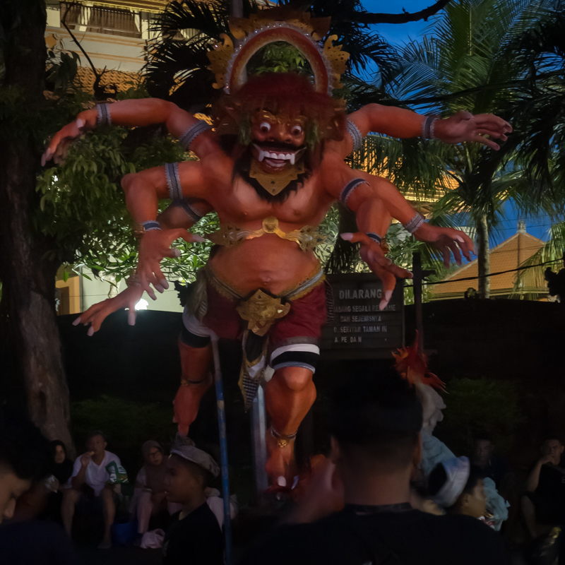 Approximately 1 1/2 years since my last visit I returned to the SE Asian tropical island of Bali. After the last trip I thought that would be my one and only visit, but Femme Nue created a nice event with some great models, and since my friend Maddy had not visited this part of the world I thought it would be worth a second visit. It was again a very long trip, where I had a plane change in Taiwan. I arrived in Bali mid-afternoon and made my way to my first hotel without issue (although I was a bit ripped-off in the airport taxi price). I had forgotten how warm and humid it was there. I had arrived a couple of days before a major religious holiday on the island. The day after I arrived there were Pangrupukan parades all over the island featuring dramatic sculptures (Ogoh-ogoh) which represent the darker aspect of human nature. This parade day preceded Nyepi, a day of silence and meditation with and no lighting or other things that could disturb the peace (and no going out into the streets). They take this quite seriously, and reportedly have even deported foreign visitors for violating the observance. My hotel had the windows covered over and had no lights in the halls and lobby (although they did serve meals). It was interesting to be there during this time. I took a few small walks, one trying to find a little grocery store, and I was reminded how absolutely insane the traffic is there. It’s really not geared for pedestrians, and I usually felt like I was taking my life in my own hands whenever I walked or tried to cross a street.